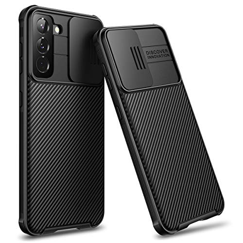 CE-Link Cover per Samsung Galaxy S21 Plus 5G, Custodia Protettiva in Silicone con Protezione Fotocamera Scorrevole, Ultra Sottile Resistente a Cadute Fibra di Carbonio Antiurti Bumper, Nero