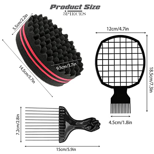 CEASELESLY 3 Pezzi Spazzola Spugna Capelli e Pettine Afro,curl sponge magic twist,Spugna per spazzola per capelli Wave Barber,per i ricci torcere bobina afro dreadlocks stile di capelli
