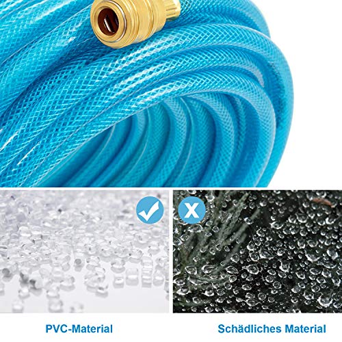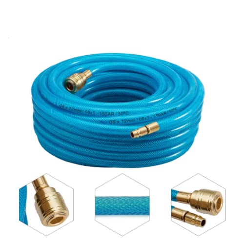 Cecaylie Tubo per aria compressa, 15 m (diametro interno 6 mm, diametro esterno 12 mm, spessore parete 3 mm) fino a 15 bar, blu, plastica e acciaio placcato in rame, accessori per compressori