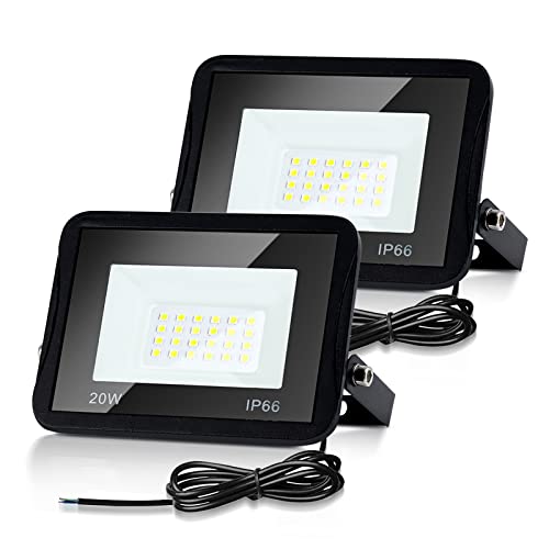 Cecaylie 2 Pezzi 20W Faretto LED Da Esterno 6000K Bianca Fredda 1700LM Faretti a LED Fari Led da Esterno IP66 impermeabile, Interna ed Esterna per Giardino, Cortile, Patio, Garage