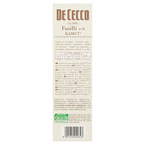De Cecco Fusilli Pasta Kamut Cee - Prodotto Biologico - 6 pezzi da 500 g [3 kg]