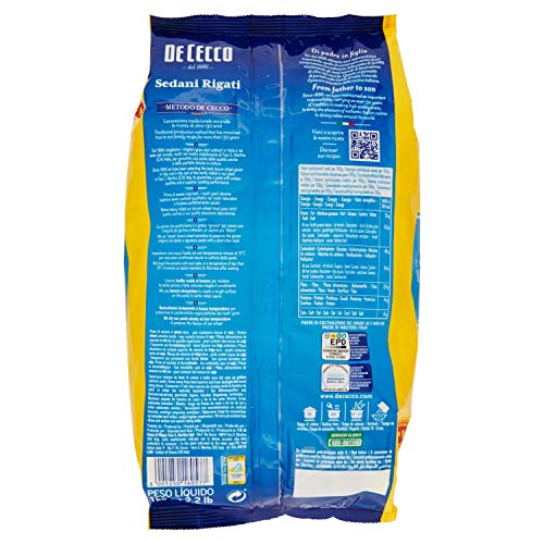 De Cecco Pasta, Sedani Rigati - 1000 g