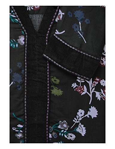 Camicia in stile tunica con maniche lunghe e scollo rotondo. Con inserti in velluto sui polsini e come apertura nella parte anteriore