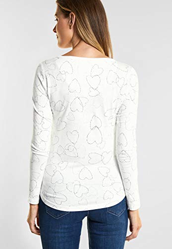 Maglietta Basic con stampa a cuori, di Cecil, girocollo, con spacco e maglia a costine