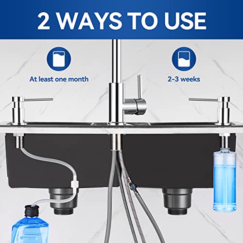 2 MODI DI UTILIZZO: Dispenser di sapone ha due metodi di installazione: installa la bottiglia di sapone da 300 ml sotto il bancone o collega la bottiglia di sapone direttamente al tubo in silicone da 1,2 m. Nota: se si utilizza la bottiglia piccola, è necessario diluire il sapone e l'acqua 1:1 prima dell'uso. Poiché il tubo è lungo, ci vorrà del tempo prima che il sapone fuoriesca, puoi aggiungere acqua al tubo per far scorrere meglio il sapone.