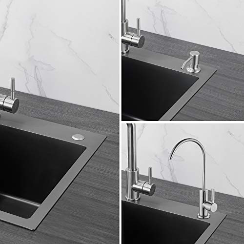 : Il lavello da cucina a doppia vasca ha fori di montaggio da 35 mm per rubinetti da cucina e fori di montaggio da 28 mm per distributori di sapone, quindi non è necessario praticare fori sul bancone.