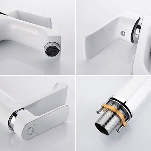 CECIPA Nefeli H101W - Rubinetto da bagno bianco in ottone - Rubinetto per lavabo con tecnologia di risparmio idrico ottimale - Cromo e Bianco