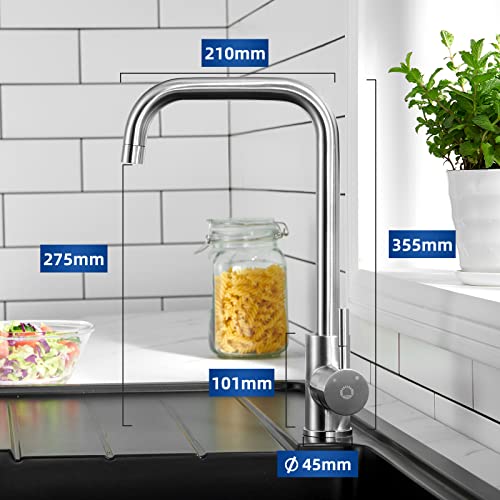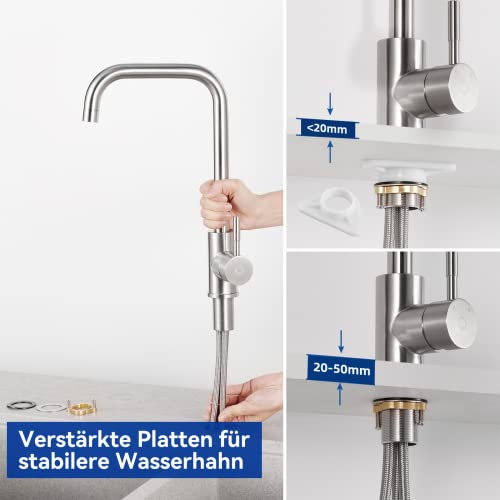 MATERIALI RASSICURANTI: Il raffinato miscelatore da cucina è realizzato in acciaio inox 304 di alta qualità per una maggiore durata. La sua superficie spazzolata previene efficacemente graffi e impronte digitali. Inoltre, il rubinetto lavello cucina a bassa pressione è dotato di 3 tubi di collegamento per uso alimentare, in modo che voi e la vostra famiglia possiate godere di acqua pulita sana e priva di odori.