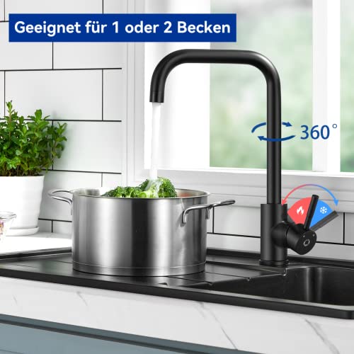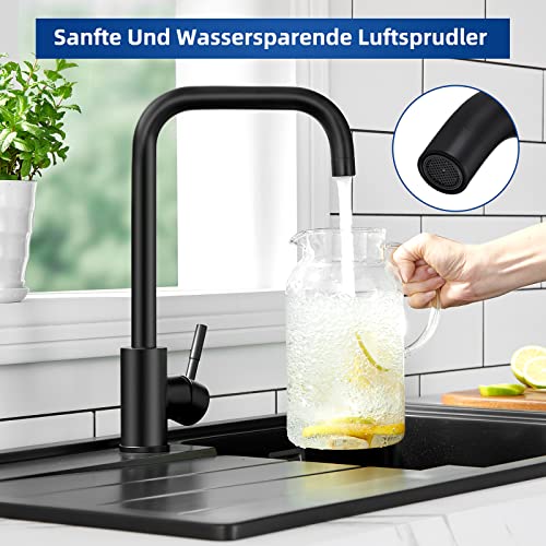 FACILE DA INSTALLARE: La base del rubinetto cucina nero e il tubo sono contrassegnati dalla sigla ABC, in modo da poterlo installare facilmente in base alla corrispondenza delle lettere. Inoltre, sulla pagina del prodotto abbiamo caricato un video di installazione e il prodotto viene fornito con un manuale, quindi non è necessario pagare un idraulico per installarlo.