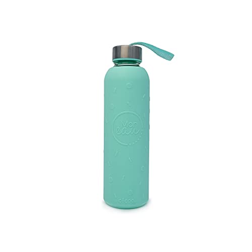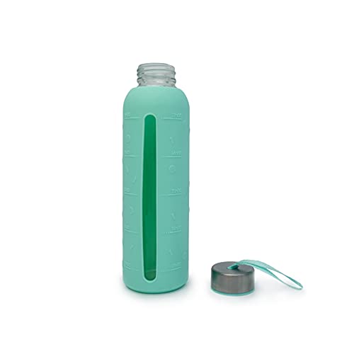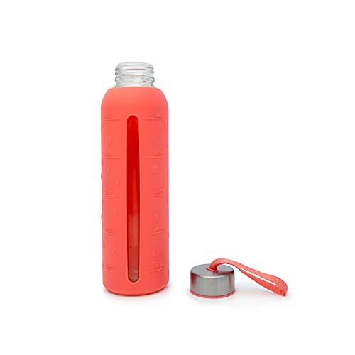 CECOA - Borraccia in vetro da 500 ml, riutilizzabile, con custodia in silicone e tappo impermeabile, indicazione della quantità di acqua giornaliera