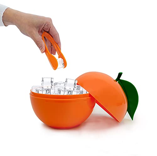 CECOA - Secchiello per Ghiaccio a Forma di Arancia e Pinza per cubetti di Ghiaccio Inclusa - Secchiello per Ghiaccio a Doppia Parete con Pinza e Coperchio, ermetico, Ideale per aperitivi, Bevande
