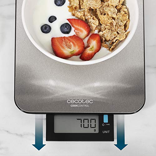 Cecotec - Bilancia da cucina digitale Cook Control in acciaio inox, display LCD retroilluminato con tecnologia WaterProof
