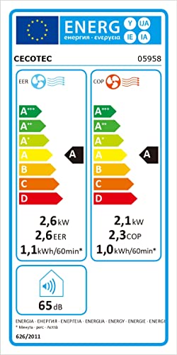 Classe di efficienza energetica A (EER). Consuma la metà di un condizionatore d'aria convenzionale. Ottenete le massime prestazioni con il minor consumo energetico. Riutilizza ed evapora l'acqua per migliorare l'efficienza, ridurre le ingombranti scariche continue e risparmiare energia. Controlla il clima della tua casa con il telecomando intelligente.