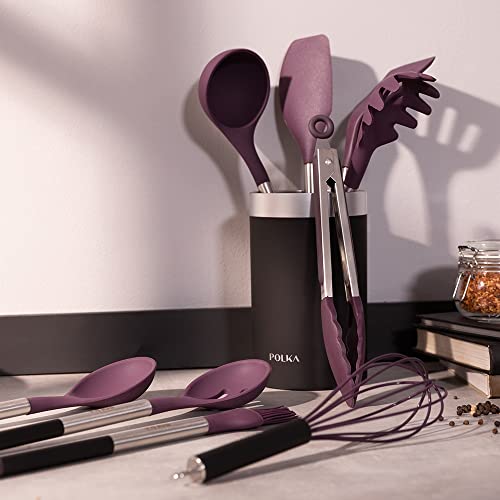 Cecotec Set di 9 pezzi Viola, rivestimento Soft touch e manico in acciaio. materiali: silicone, nylon e PP, include Holder Polka