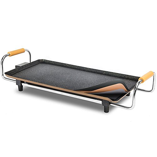 Cecotec - Piastra grill elettrica per barbecue con rivestimento in pietra, grandi dimensioni, termostato e manici di sicurezza effetto freddo. Grill elettrico di Cecotec. 2.000 W.