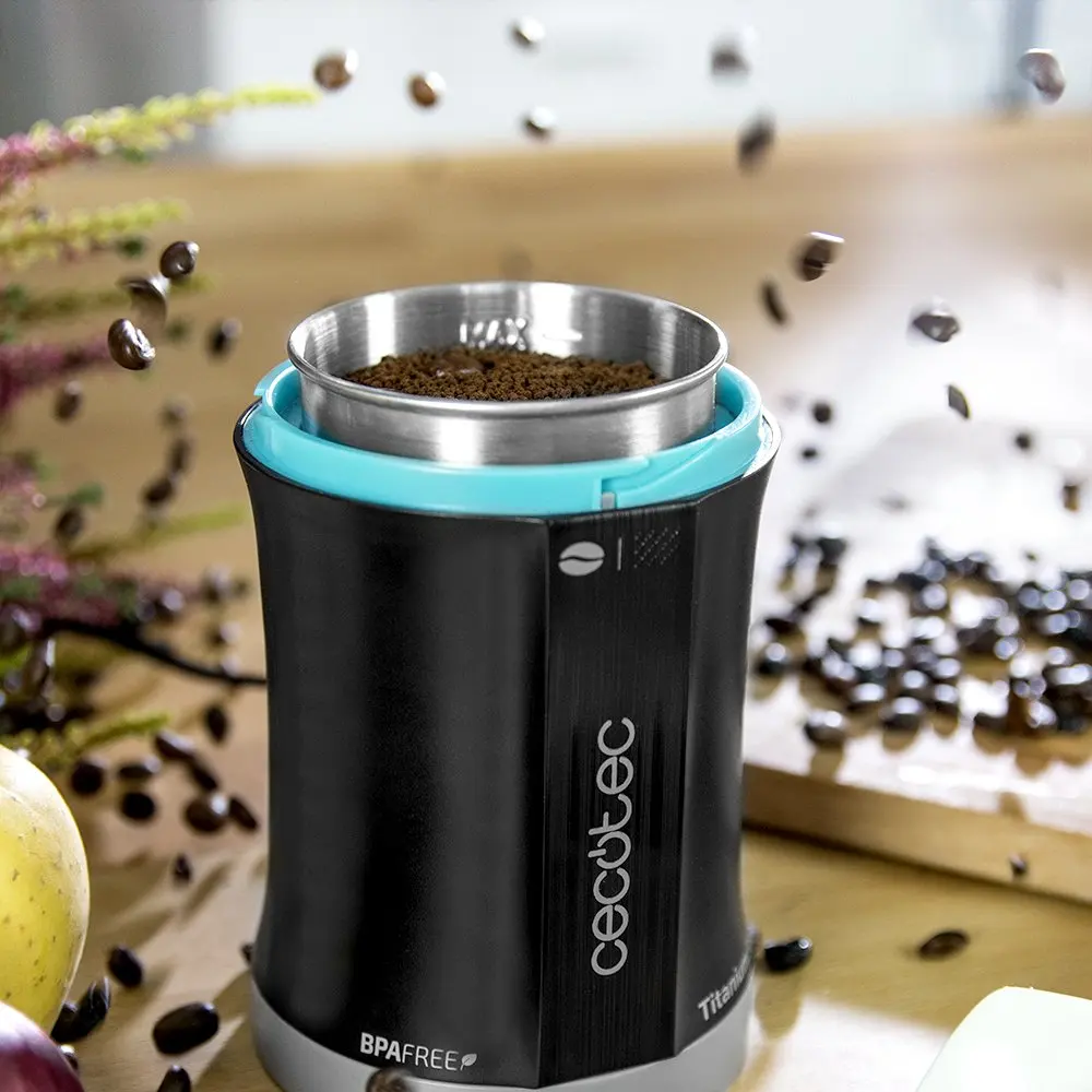 Cecotec TitanMill 200-300-2000 Coffee Grinder Electric 200W Titanium Coated Blades 50g Capacity Steel Container Easy to Clean
