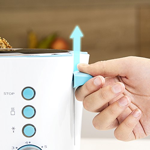 Finiture in acciaio inox Meccanismo di spegnimento automatico e pop-up. Espulsione automatica del brindisi al termine del programma. Sistema di sollevamento extra per una facile estrazione del toast
