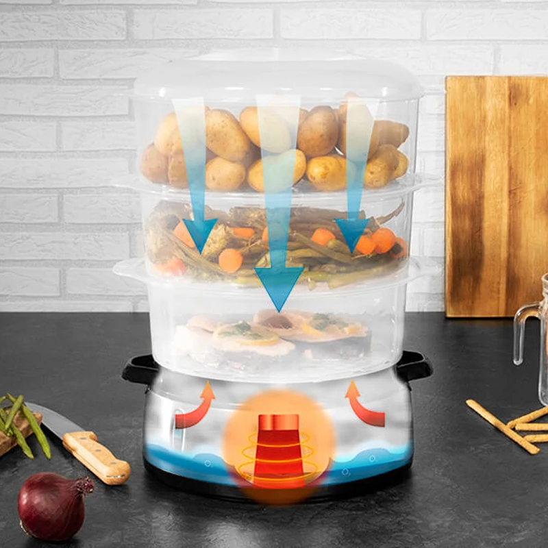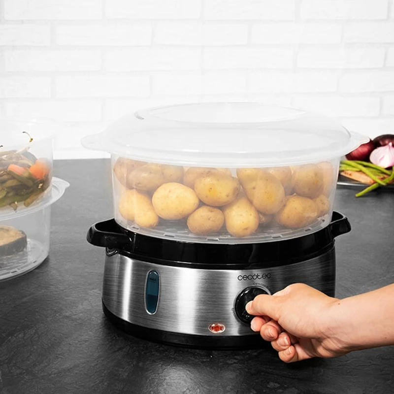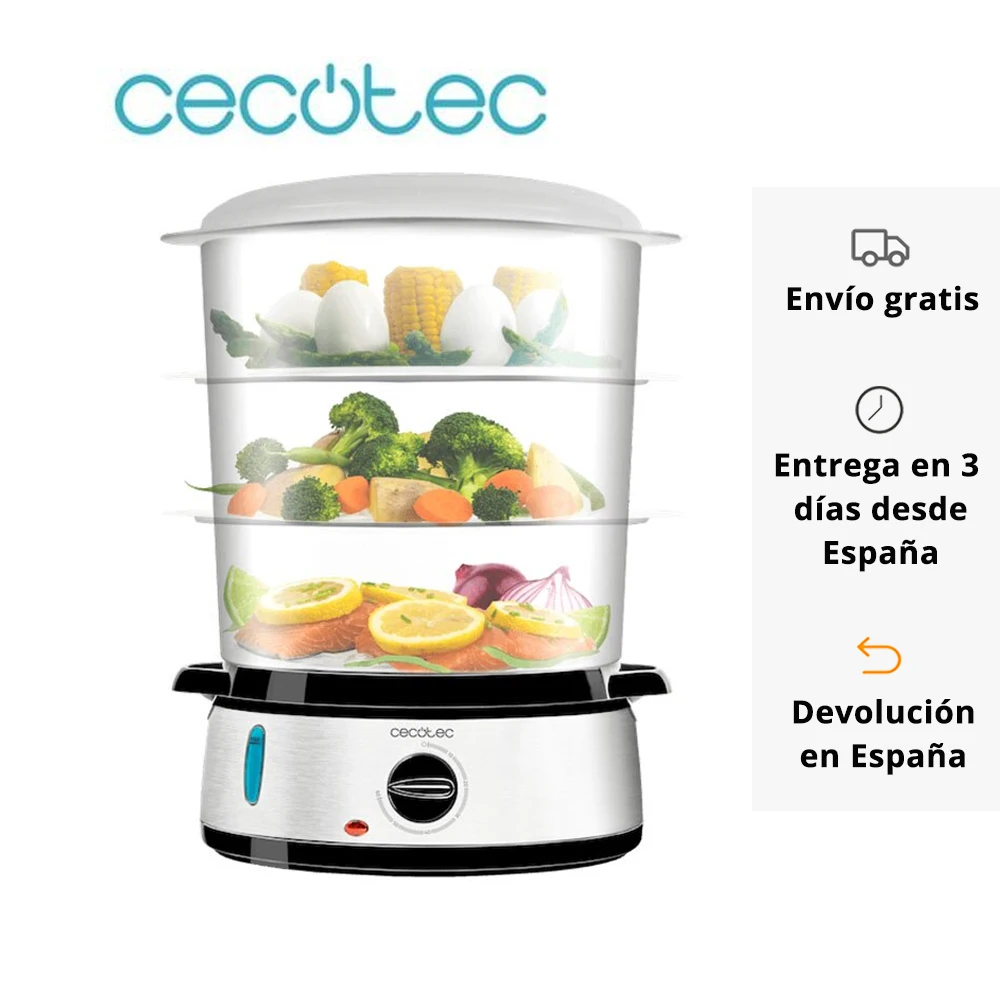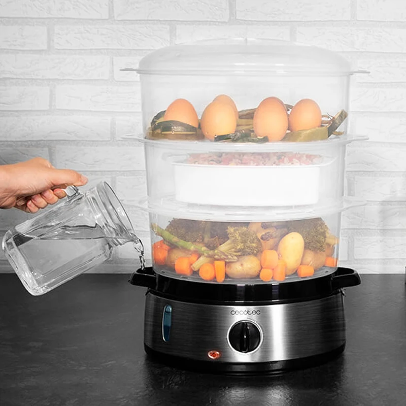 Cecotec Vapovita 3000 INOX electric steamer with 800 W 3 independent containers supports cook eggs timer 2 lateral water inlets