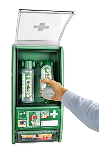 Cederroth ® | Stazione lavaggio oculare | Stazione a parete robusta e pratica con 2 flaconi per lavaggio oculare Cederroth da 500 ml e dispenser per cerotti