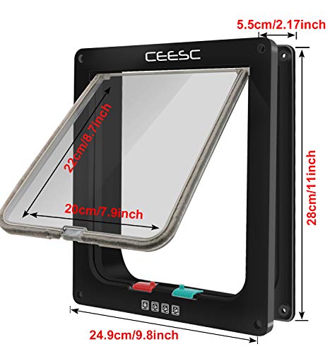 CEESC Grande gattino (dimensioni esterne 28 x 24,9 cm), chiusura a 4 vie per gatti e cani di piccola circonferenza