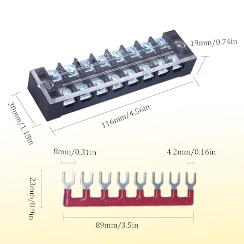 CEEYSEE Morsetti a vite, 6 pezzi 8 posizioni morsetto a vite a due file coperto 600 V 25 A + 6 pezzi 8 posizioni preisolate nero/rosso morsettiera forcella 400 V 25 A (DTB2508)