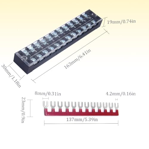 3.Morsettiera a doppia fila dimensioni:16.4 x 3.0 x 1.9cm (lunghezza x larghezza x altezza).