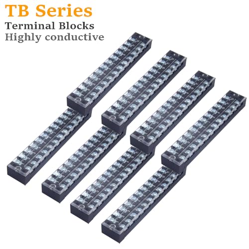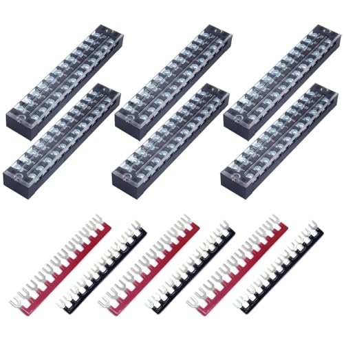 CEEYSEE 12 Pezzi Morsettiera Elettrici Striscia terminale a vite 6 pezzi 12 Position morsettiera a doppia fila 600 V 25 A +6 pezzi 12 Position Con striscia a barriera 400V 25A rossa e nera (YTB2512)