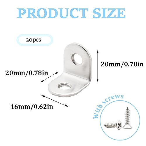 CEEYSEE 20 Pezzi Staffe Angolari 90 Gradi 20 x 20 mm in Acciaio Inossidabile Staffa Angolare in Acciaio Inox con Viti Per Il Fissaggio Di Mobili In Legno, Tavoli, Sedie, Finestre (20mm)