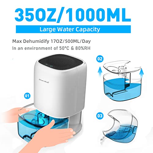 Deumidificatore altamente efficiente - questo mini deumidificatore portatile ha una grande capacità di 1000 ml, che può raccogliere l'umidità in eccesso nella stanza e rilasciare aria fresca in modo da non sentirti appiccicoso o troppo secco. Allo stesso tempo, può prolungare la vita dei tuoi mobili e offrirti un sano ambiente di lavoro e di vita
