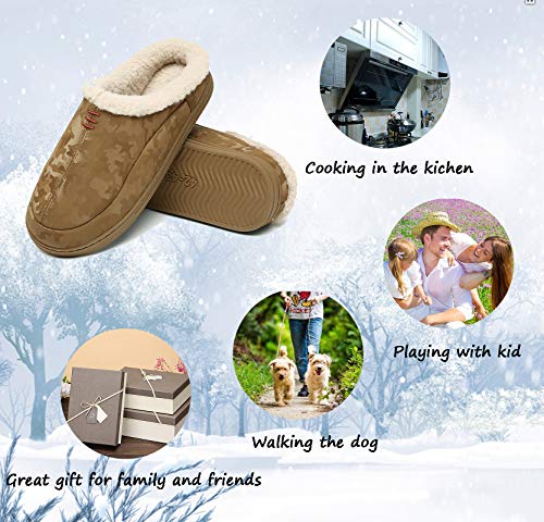 CELANDA Invernali Pantofole da Casa per Donna Uomo Memory Foam Scarpe Caldo Peluche Ciabatte Impermeabile Cotone Scarpe Interno Esterno Antiscivolo Slipper Marrone 37-38EU