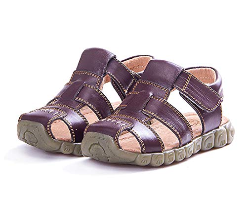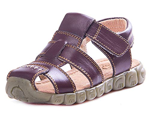 CELANDA Sandali a Punta Chiusa per Bambini e Ragazzi Ragazze Cuoio Morbida Estivi Scarpe da Spiaggia Sandali Sportivi Durevoli Marrone Taglia: 22 EU