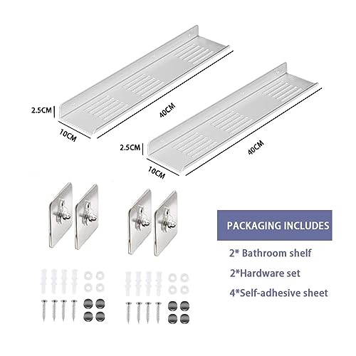 Celbon 40cm Bianco Da Organizer Mensola Per Il Bagno Acciaio inossidabile Mensola Per Bagno Appesa a Parete Mensola Bagno Autoadesivo di bagnoschiuma Shampoo Mensole Doccia-2 Pezzi