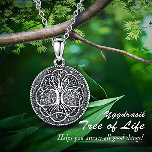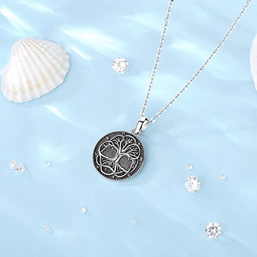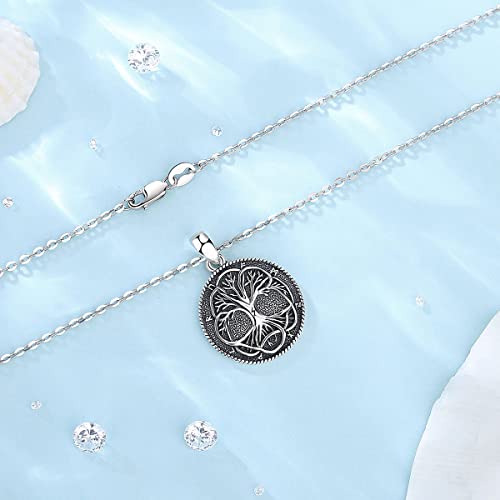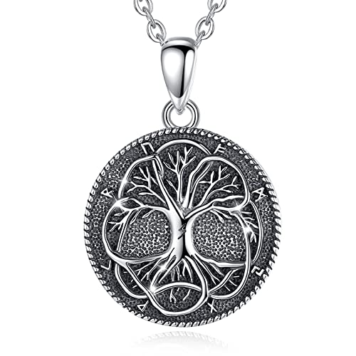 CELESTIA Donna Collana Albero Della Vita, Antiquariato Argento Sterline 925 Yggdrasil Albero Ciondolo con Rune Norrene, Gioielli Vichinghi, Talismano Regali per Ragazze