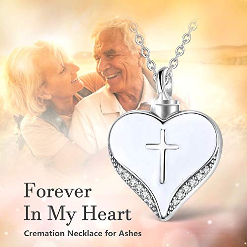 CELESTIA Donna Gioielleria Cremazione Funerario, 925 Sterline d'argento Inciso Cuore e Croce Ciondolo Memoriale Collana per Ceneri, Commemorazione di Animali Domestici