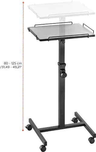 celexon PT2000B tavolo per videoproiettore - Altezza variabile 80 - 125 cm - Inclinabile di 20° - 4 piedini a rotelle (fissi) - Dimensioni del piano 50 x 40 cm (LxH)