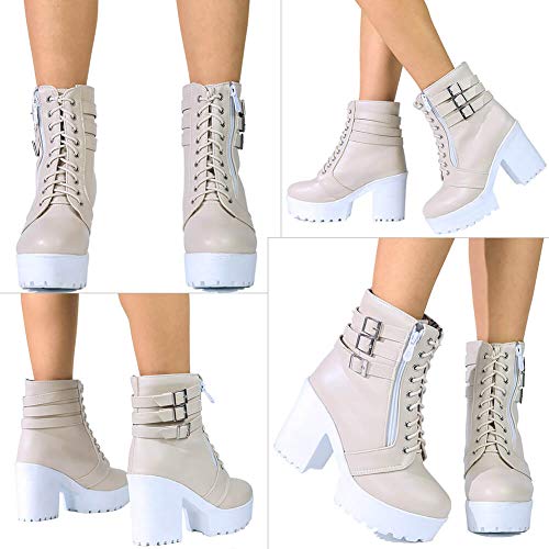 Cellefo Platform Mid Polf Boots, Lace Up Chunky Block Tacchi Alti Stivaletti Corti Stivaletti Moto Combat Stivali, (Fbeige.), 40 EU