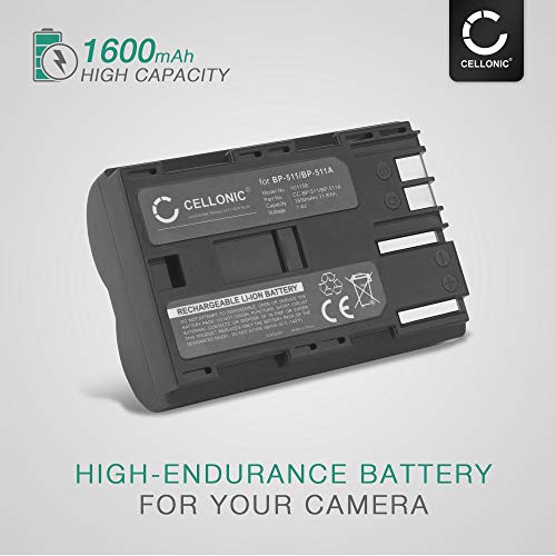CELLONIC 2X Batteria BP-511-512 -514 BP-508 BP-522 BP-535 Compatibile con Canon EOS 5D EOS 50D EOS 40D EOS 30D 300D EOS 20D EOS 10D PowerShot G3 G5 G1 MV730i MV700 MV630i MV600 ZR80 ZR85, 1600mAh
