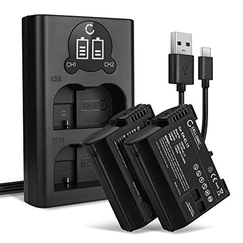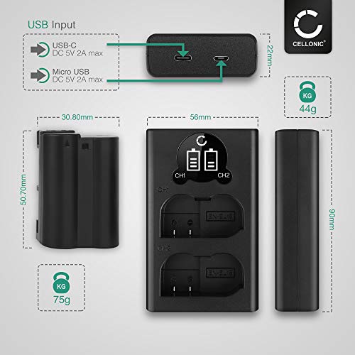 CELLONIC 2X Batteria Compatibile con Nikon D750 Z 6 Z 7 Z 5 1 V1 D7000 D7100 D7200 D7500 D800E D810A D850 D600 D610 D500 EN-EL15 ENEL15 ENEL15 2000mAh Caricabatterie Doppio MH-25a accu Sostituzione