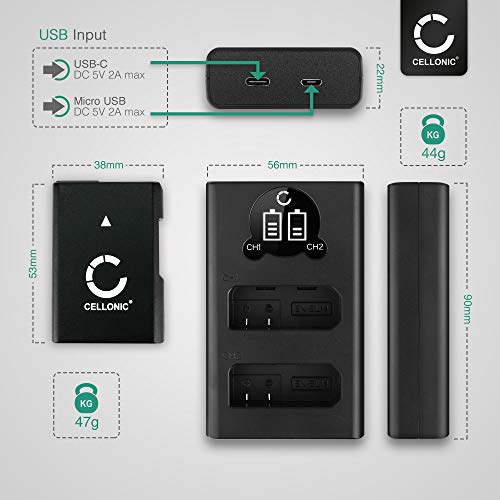 CELLONIC 2X Batteria EN-EL14 EN-EL14a Compatibile con Nikon D3500 D3200 D3100 D5100 D5300 D5600 Coolpix P7000 P7100 P7700 capacità 1050mAh + Caricabatterie Doppio MH-24 Ricambio Sostituzione Battery