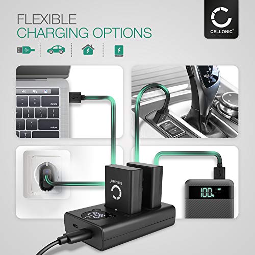 TROVERÀ SPAZIO IN QUALISIASI BORSA PER FOTOCAMERA - La forma compatta ed ergonomica ti permetterà di portare il caricatore doppio ovunque tu voglia, in viaggio o in macchina. Un cavo USB-C è già incluso, anche se il caricabatteria può essere impiegato via porta micro-USB