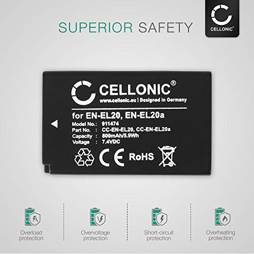 CELLONIC 2X Batteria EN-EL20 EN-EL20a Compatibile con Nikon 1 AW1 1 J1 1 J2 1 J3 1 S1 1 V3 Coolpix A CoolPix P1000 CoolPix P950 DL24-500 capacità 800mAh Ricambio Sostituzione Battery