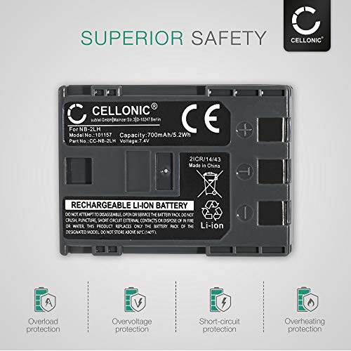 CELLONIC 2X Batteria NB-2L NB-2LH BP-2L5 Compatibile con Canon EOS 400D EOS 350D EOS Digital Regel XTi PowerShot G7 G9 S50 HG10 Legria HF R16 R106 MD235 VIXIA HV30 ZR800 ZR500, | capacità: 700mAh