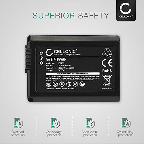 CELLONIC 2X Batteria NP-FW50 Compatibile con Sony Alpha 6000 A6000 A6300 A6500 Alpha 5000 a5000 A5100 A7 Alpha 7 II A7II A7s A7R ILCE-7R RX10 III capacità 1080mAh Ricambio Sostituzione Battery