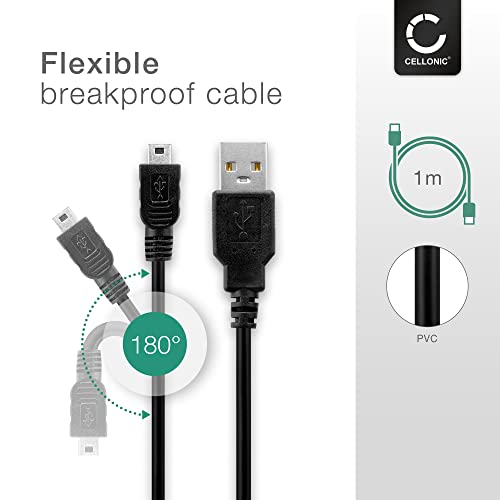CELLONIC ® Cavo USB 1m compatibile con FujiFilm X-E1 X-S1 FinePix HS20EXR HS30EXR S9600 S9500 S9400 S9200 S8600 S7000 S6500 S5500 S5000 Fuji S5 Pro A350 Filo carica 2A Cavetto dati USB A 2.0 PVC nero, per fotocamera