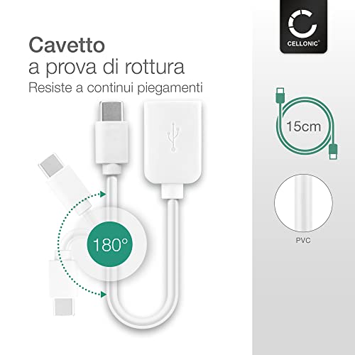 CELLONIC Cavo OTG 15cm Compatibile con Samsung Galaxy S22, S21, S20, S10, S9, A52, A51, A50, A22, A12 Adattatore per Telefono Smartphone USB C Type C 2.0 Bianco PVC