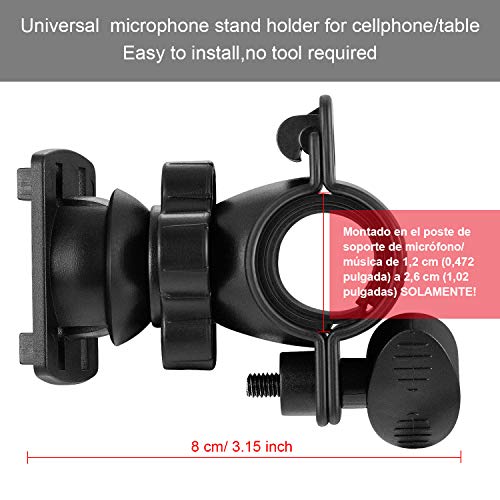 Compatibilità: universale musica microfono mic stand montaggio vi permetterà di stare più di 3 pollici a 11.5 pollici tablet e dispositivi smartphone, adatto per iPhone, iPad e dispositivi Android (Nota: SOLO può essere montato su 0.43 a 1.02 pollici di musica/ microfono stand pole), Sono supporti universali per auto