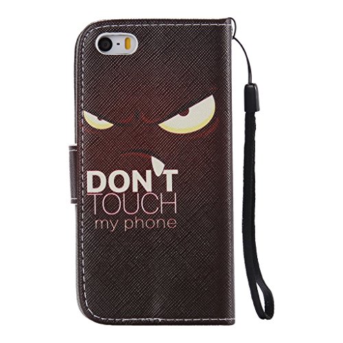 SZYT Cellulari Custodia per Apple iPhone 5SE, 4.0 centimetro, PU cuoio Flip Cover con Handle, strano proverbi espressione arrabbiata Don't Touch My Phone