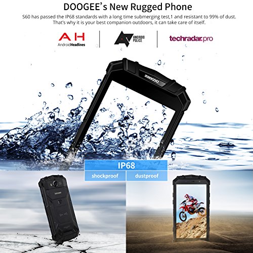 POTENTE TELEFONO RUGGED - DOOGEE S60 ha un grado di resistenza all'acqua ip68 e un corpo militare in metallo resistente, con un resistente touchscreen in vetro gorilla 5 può resistere anche agli ambienti più difficili, sia che si tratti del cantiere o della spiaggia. Ottiene anche il display unico da 5,2 pollici in S60.