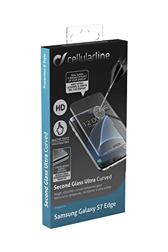 Cellularline Second Glass - Pellicola proteggi schermo ultra curva per Samsung Galaxy S7 Edge, in vero vetro temperato e design curvo per una perfetta corrispondenza - trasparente