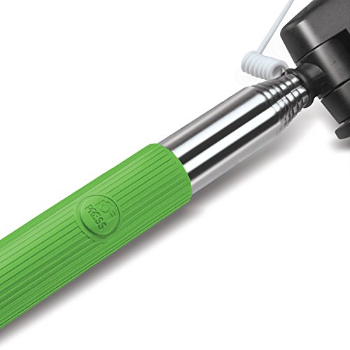 L'asta è dotata di un'impugnatura rivestita in gomma antiscivolo con tasto per il controllo remoto dello scatto (solo per Android e iOS).
